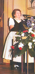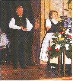 Bei diesem Treffen erhält unser Pfarrer Jakob STEHLE eine echtes "Schwoweleiwle" - überreicht von Frau Elisabeth Welzel - "Schelke Lies":