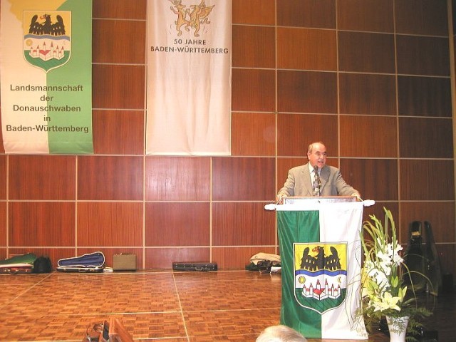 Die Jubiläumsfahnen der Donauschwaben und des Landes Baden-Württemberg