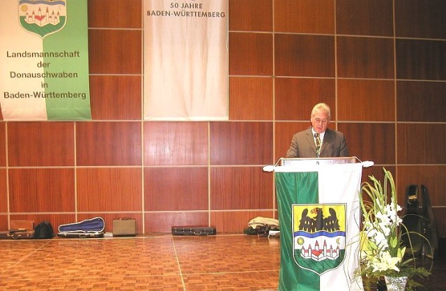 Die Jubiläumsfahnen der Donauschwaben und des Landes Baden-Württemberg